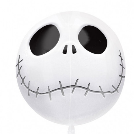 Balão redondo e transparente do Jack Skellinton que fica do tamanho de uma bola de praia quando cheio.