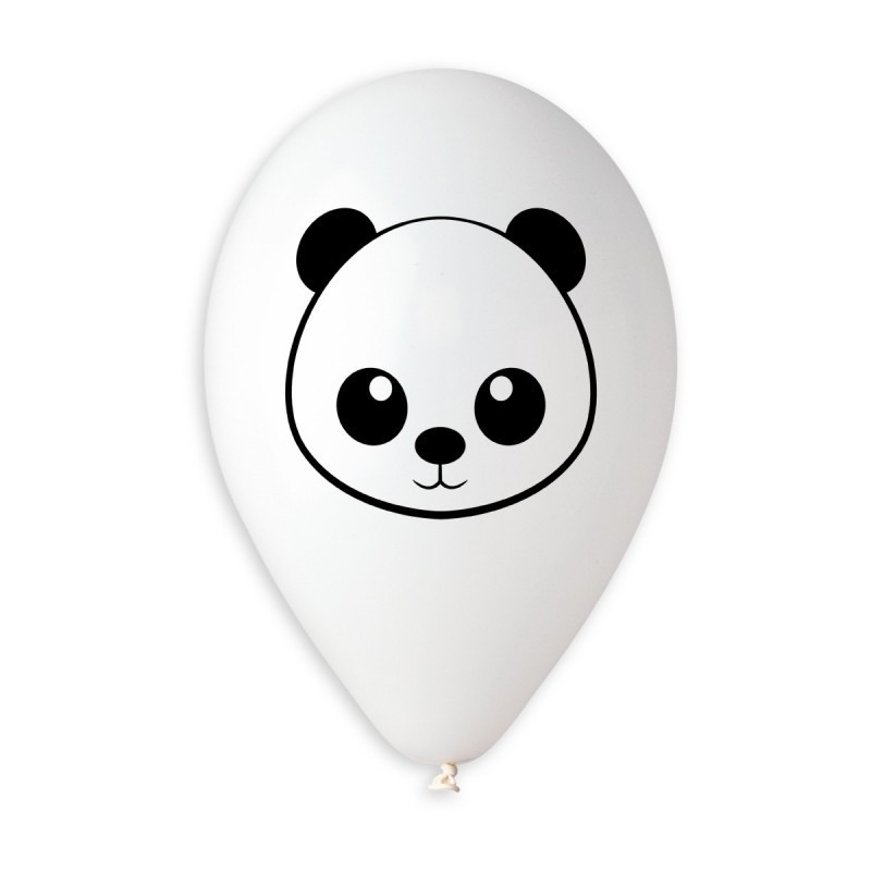 Balão latex de 13" (33cm) com dupla impressão de um Panda a preto. Também disponivel em preto com impressão branca.