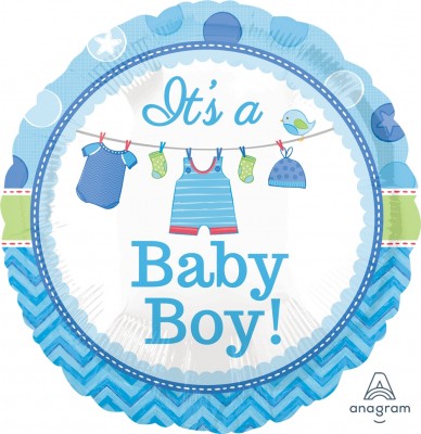 Balão foil redondo em tonz azuis bebé com a inscrição «Its a Boy» (é um menino) ideal para festas baby shower ou visitas a recém-nascidos.Diâmetro: 43cm.