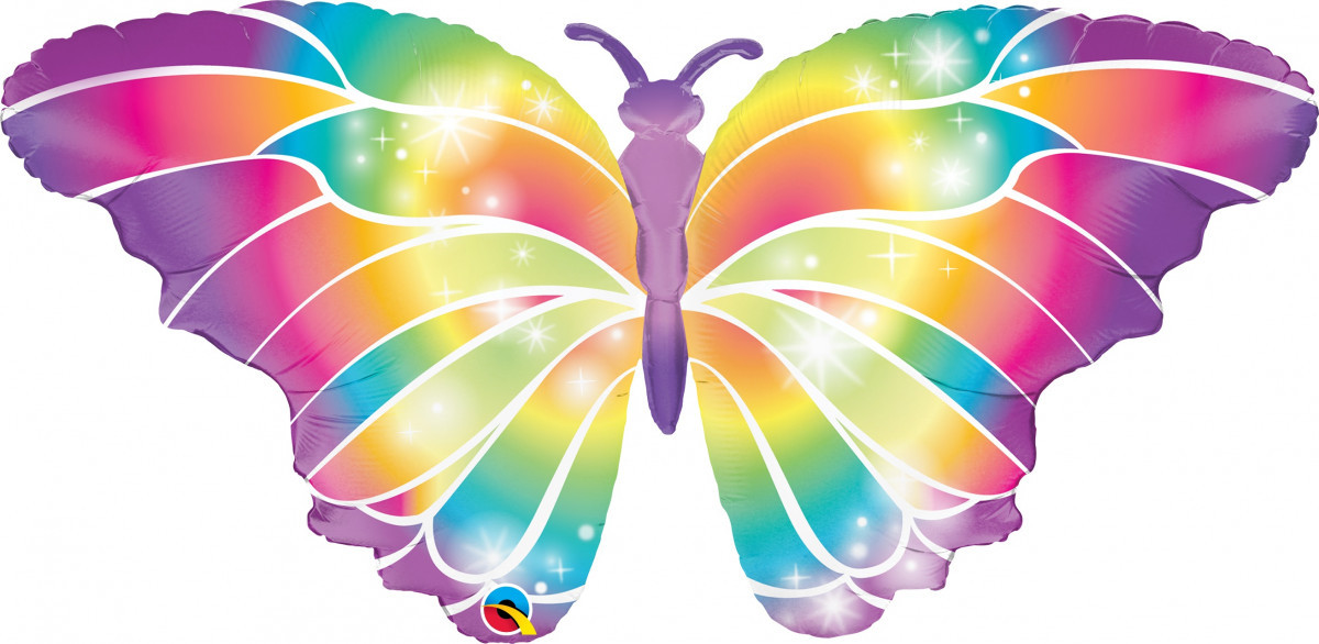 Balão foil em forma de borboleta azas em rosa corpo em dourado.