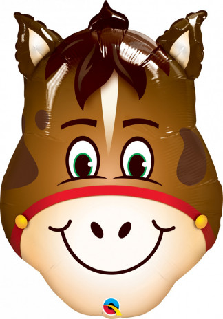 Balão foil com cara de um simpatico cavalinho ótimo para decoração de festas de aniversário com o tema animais da quinta.