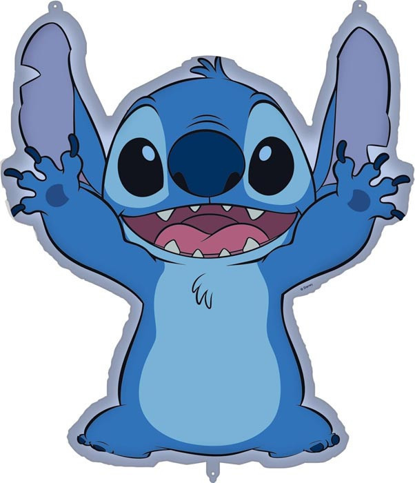 Balão foil para festa de aniversário com tema Stitch. Inclui um balão foil em forma de Stitch com 76cm*88cm com fita e palhinha da marca Decorata Party. Este balão foil é indicado para enchimento a hélio ou ar.
