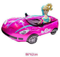 Balão foil com a forma do carro da Barbie com a boneca no seu interior, para decorar a sua festa de aniversário com o tema da Barbie.