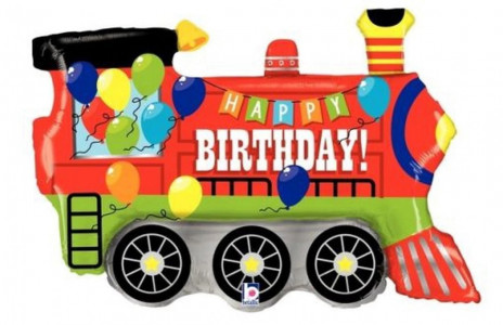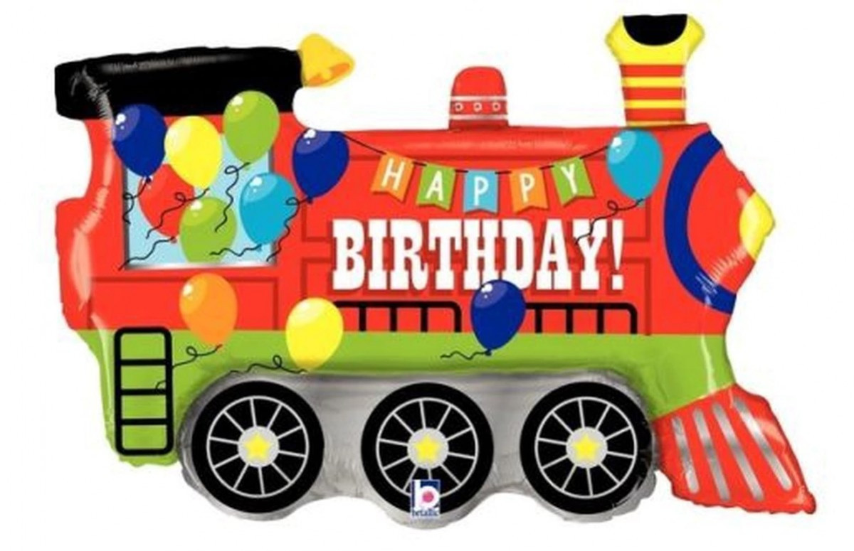 Balão foil metálico supershape com a forma de comboio com a inscrição "Happy Birthday" com 94cm. Ideal para decoração da tua festa de aniversário.