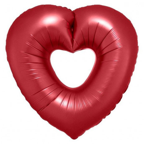 Balão foil em vermelho em forma de coração com abertura ao meio para celebrar o dia dos namorados, o dia de são valentim.
