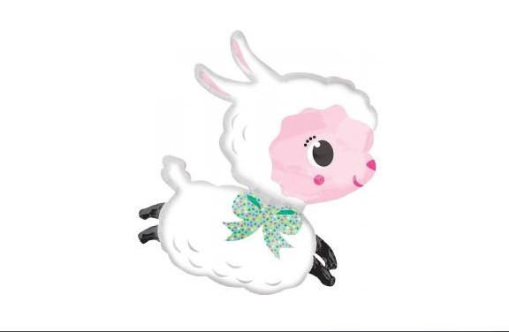 Balão em folha de alumínio (foil) com a forma de ovelhinha muito fofinha para decorar qualquer festa temática.