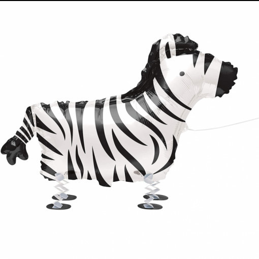 Balão foil de zebra para decorar a sua festa de aniversário com o tema dos animais da selva. Para conseguir o "efeito de caminhada", é necessário encher o balão com hélio, que o faz flutuar. As pernas, por outro lado, atuam como um ponto de fixação, com o qual o balão não mexe, permanece em pé no chão. Puxa a fita e o balão vai atrás de ti (fita incluída).