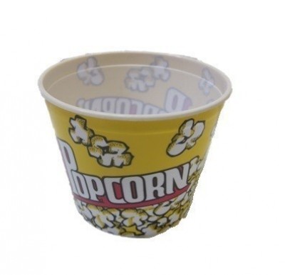 Balde ou taça para pipocas em plástico resistente com capacidade de 1 litro para as pipocas nas festas de aniversário.