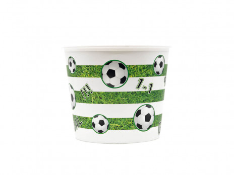 Balde para colocar pipocas e outros snacks na tua festa ou serão em família com o tema Futebol. Em plástico, resistente e reutilizável.
