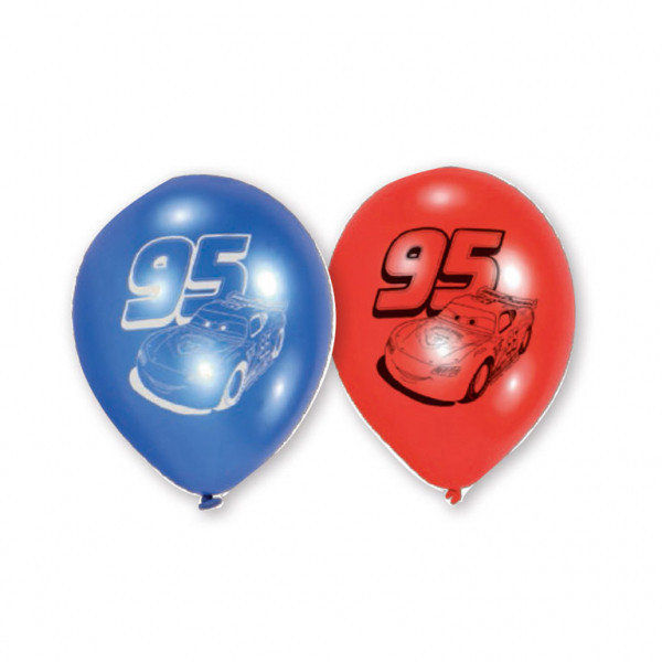 Conjunto de seis balões látex impressos com imagem do filme Carros da Disney.