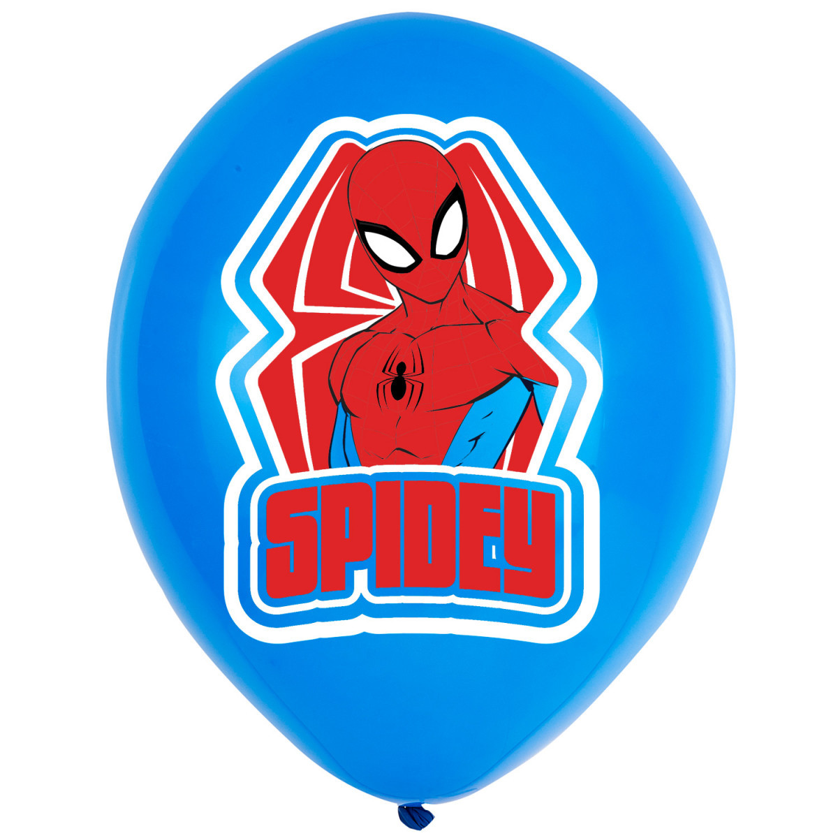 Conjunto de seis balões latex do Homem-Aranha com impressão a 4 cores. Contém 3 balões azuis e 3 balões vermelhos. Dimensão: 11" (28cm diâmetro).