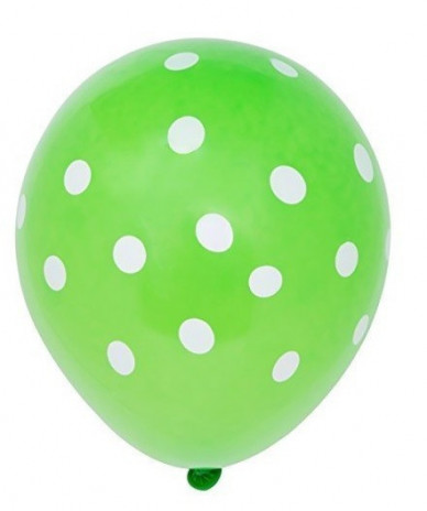 Pack de 6 balões em latex na cor Verde com bolinhas brancas.