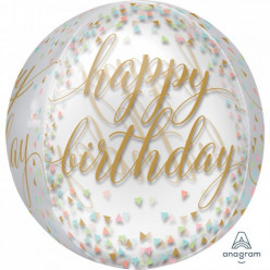 Balão Orbz Happy Birthday Confetti Fun 38cm