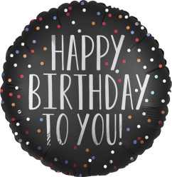 Balão Foil Happy Birthday Velas Preto e Ouro 18"