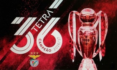 Bandeira do Sport Lisboa e Benfica com as dimensões de 135x90cm alusiva à conquista do 1º tetra campeonato e o 36º campeonato nacional.