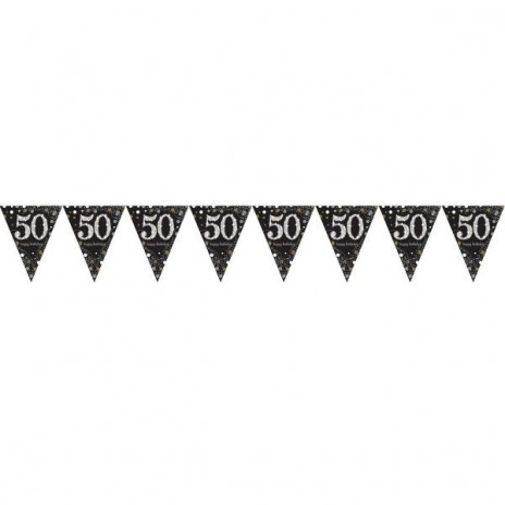 Bandeiras de formato triangular decorativas em plástico para decorar a sua festa de aniversário do 50º aniversário.