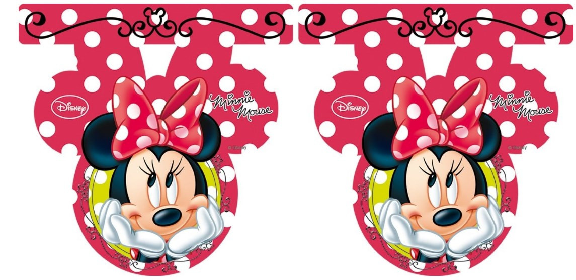 Grinalda com bandeiras com um formato único para decoração de festas de aniversário com o tema da Minnie da Disney.