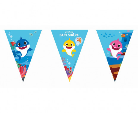 Bandeiras de formato triangular decorativas em papel do Baby Shark para decorar a tua festa de aniversário.