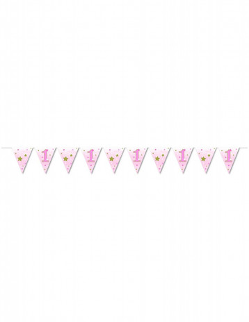 Bandeira de tamanho grande para festas de primeiro aniversário, nos tons de rosa com estrelinhas.