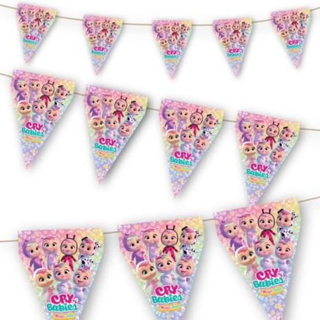 Bandeiras de formato triangular decorativas dos Cry Babies para decorar a tua festa de aniversário com o mesmo tema.