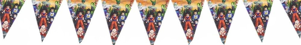 Bandeiras de formato triangular decorativas do Dragon Ball para decorar a tua festa de aniversário com o mesmo tema.