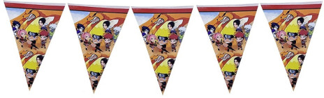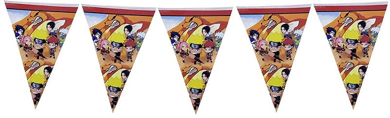 Bandeiras de formato triangular decorativas do Naruto para decorar a tua festa de aniversário com o mesmo tema.