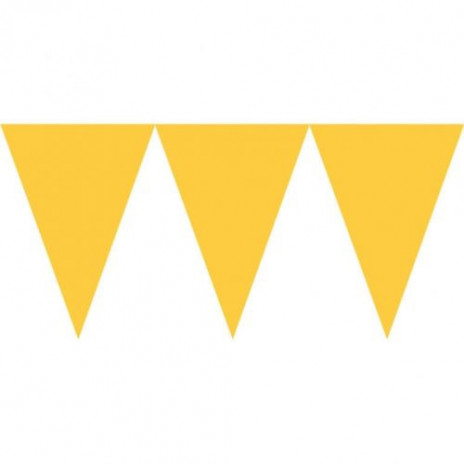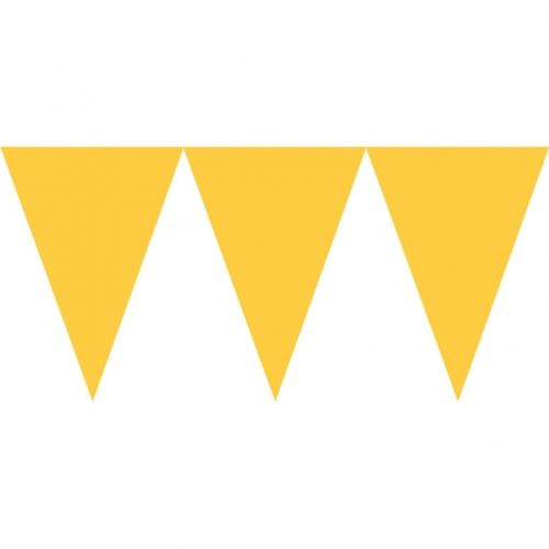 Bandeirola triangular de cor amarela para decoração da sua festa de anos. Inclui 24 bandeiras e cordão.
