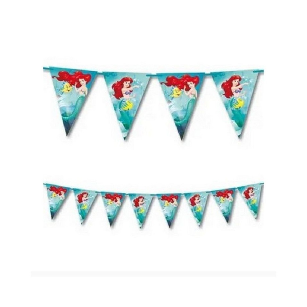 Bandeiras de formato triangular decorativas em papel da Ariel, A Pequena Sereia da Disney para decorar a tua festa de aniversário com o mesmo tema.