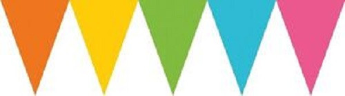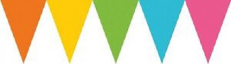 Bandeirola triangular com várias cores para decoração da sua festa de anos. Inclui 24 bandeiras e cordão.