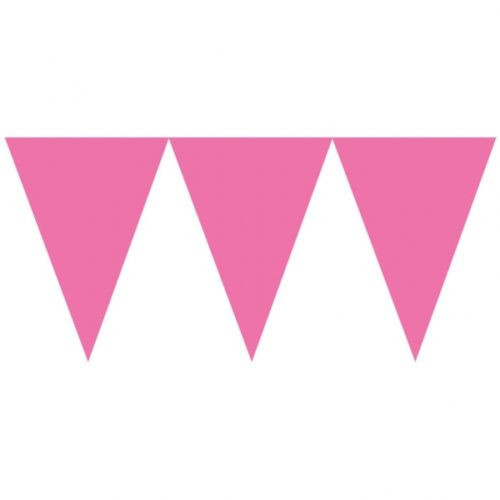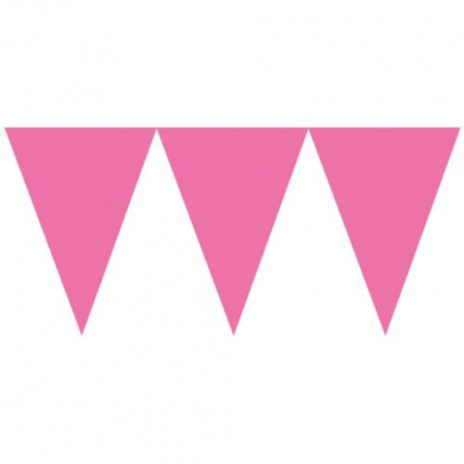 Bandeirola triangular de cor rosa para decoração da sua festa de anos. Inclui 24 bandeiras e cordão.