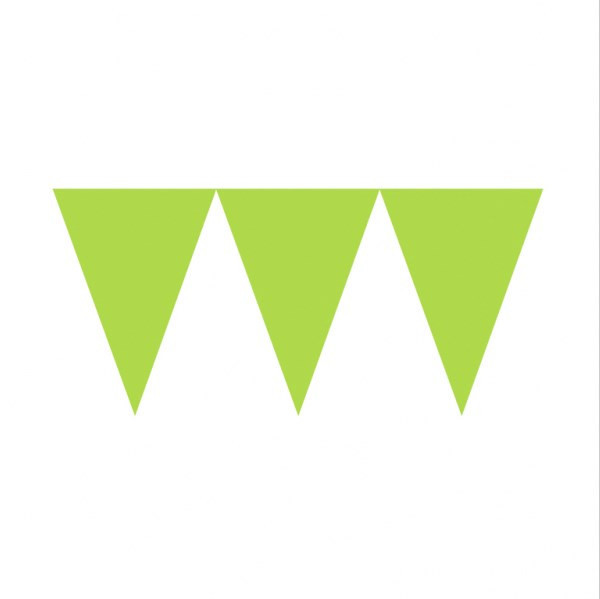 Bandeirola triangular de cor verde lima para decoração da sua festa de anos. Inclui 24 bandeiras e cordão.