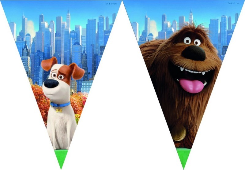 Bandeirinhas para decoração de festas de aniversário dos animais do filme Secret Life of Pets - A Vida Secreta dos Nossos Bichos. Dimensão: 2,3m.