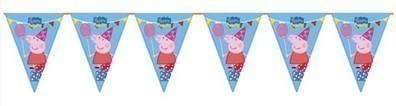 Torna a tua festa de aniversário verdadeiramente Oinc oinc pendurando esta faixa com 3 metros na parede ou noutro local. Bandeirinhas com a dimensão de 20x30cms.