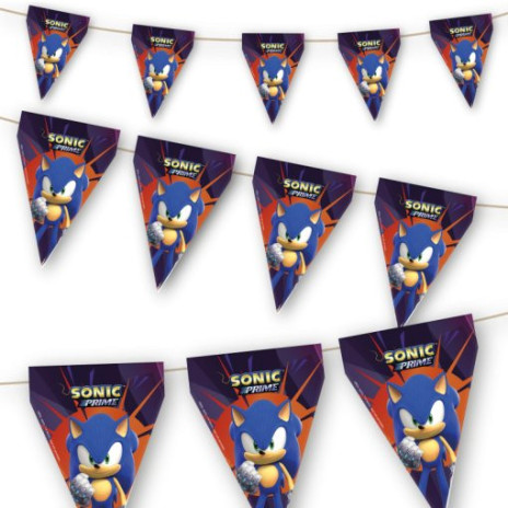 Bandeiras de formato triangular decorativas do Sonic para decorar a tua festa de aniversário com o mesmo tema.