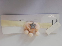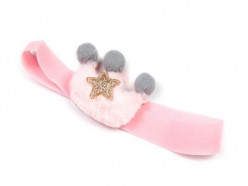 Bandolete para bebé com tule, coroa e pompons. Ideal para a sua princesa. Em duas cores disponíveis, rosa e bege.