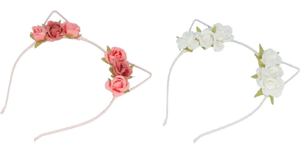 Diverte-te com esta bandolete com orelhinhas e com flores para cerimónia. Disponível em cores sortidas.