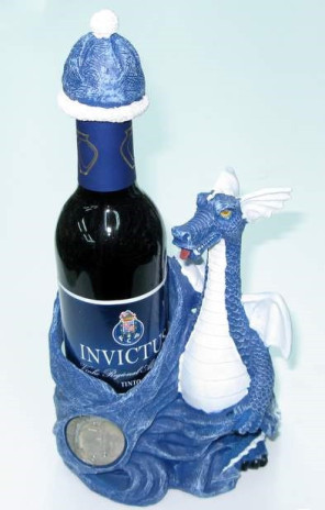 Base para garrafa de vinho em formato de cachecol e ao seu lado está o imponente Dragão do Futebol Clube Porto
