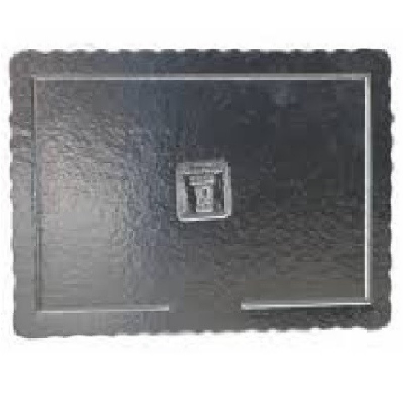 Base fina de cartão recortada para bolos e outros doces de cor prata, com capacidade de suportar bolos até cerca de 5 kg.