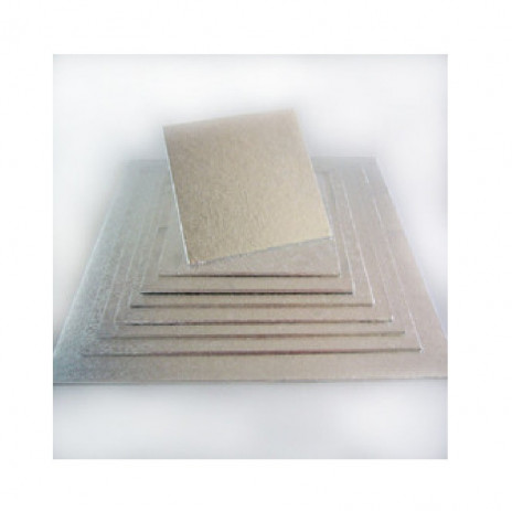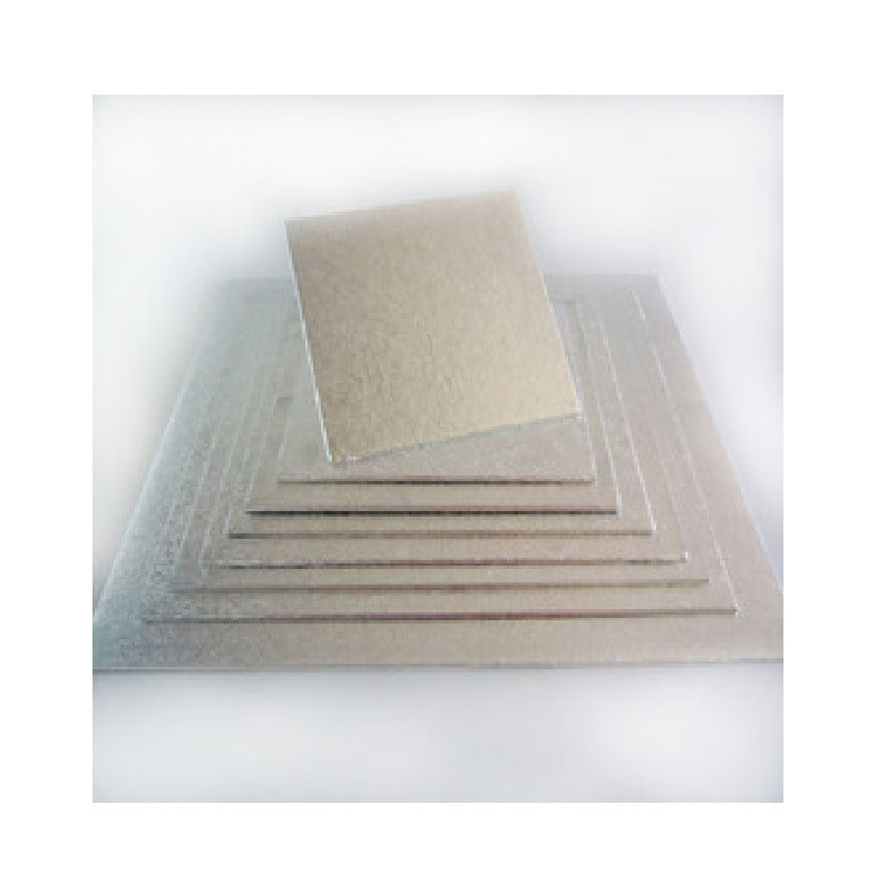 Base fina de cartão para bolos e outros doces de cor prateada.