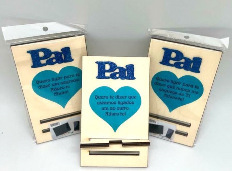 Para oferecer no dia do pai, uma base para colocar o telemóvel com várias frases.