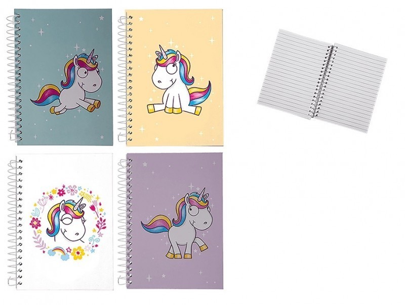 Caderno em espiral com tema unicórnio na capa feita de papel grosso. 80 folhas de papel alinhado. Item bonito tanto para menina, como para adolescente. Vários padrões da capa disponíveis - variados.