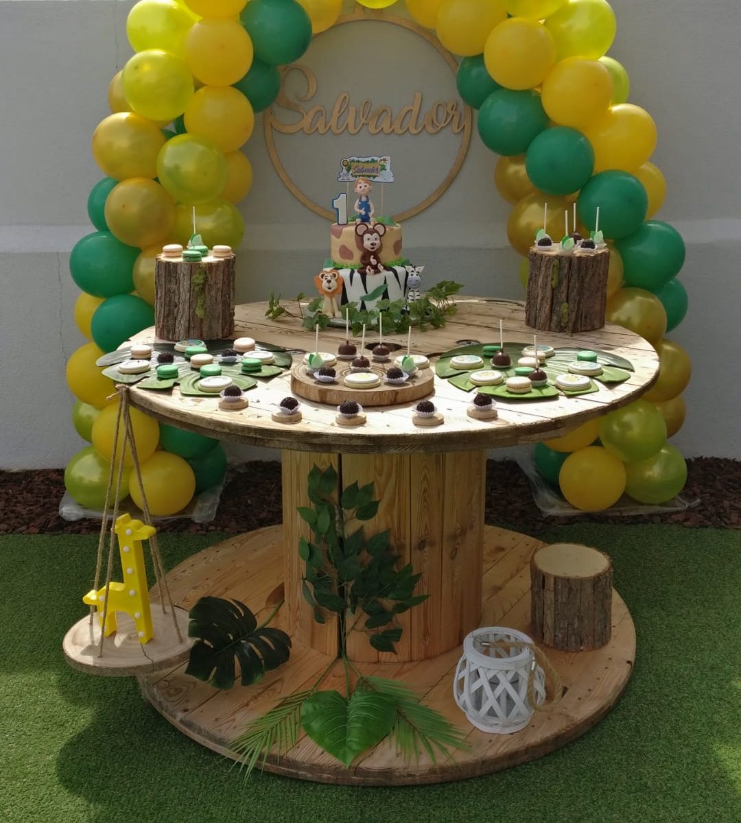 Uma festa da selva com os nossos amigos animais. Nesta festa além da decoração foi nos pedido macarons, bolachas e brigadeiros. obrigada aos pais.