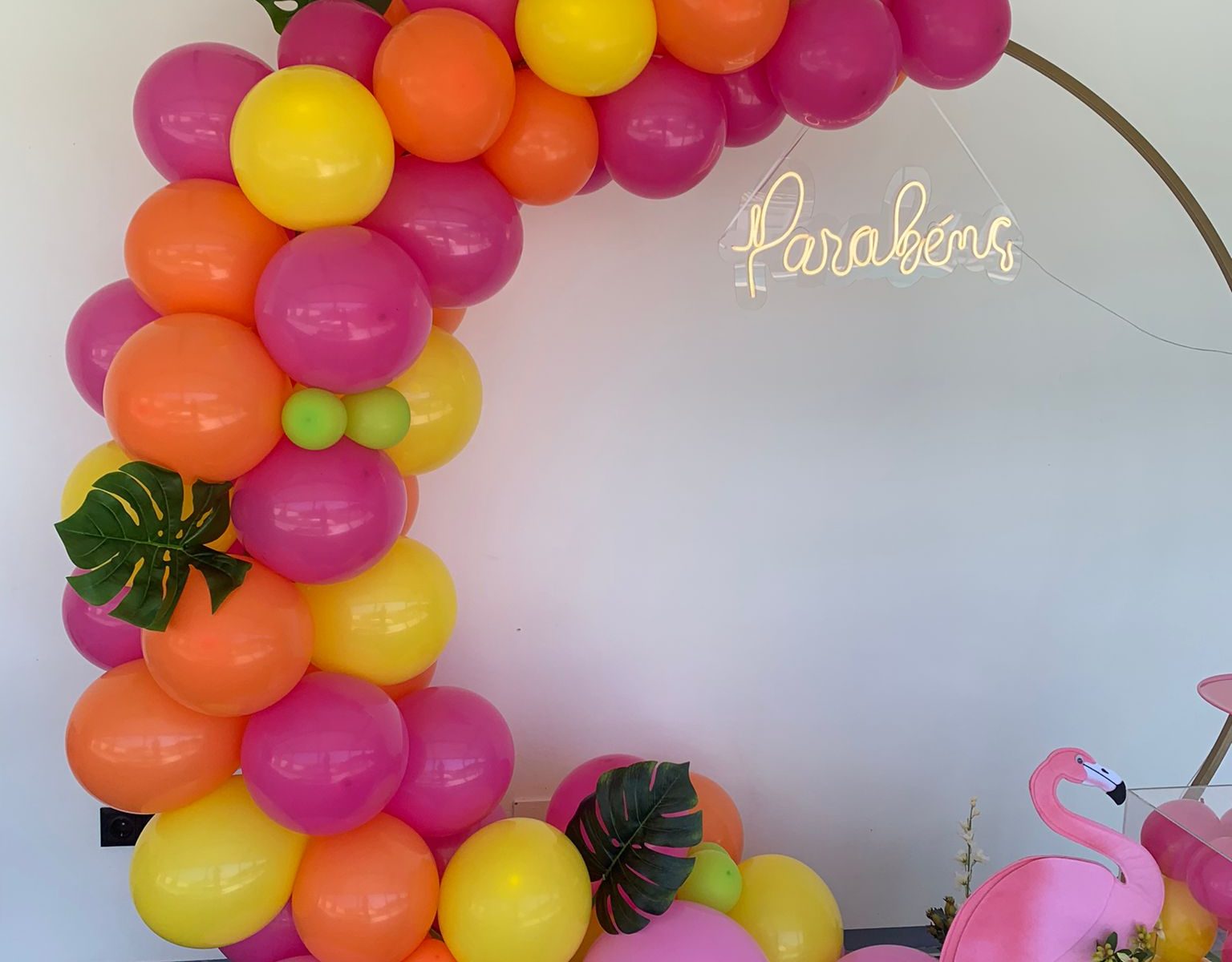 Uma Festa fofinha para uma bebé super querida. Foi um gosto realizar esta decoração. Arco em madeira, lona, balões para arco, 3 cilindros, saia tropical, bandeirolas, toalha chão, algumas plantas, stand cake e lembranças gomas para as crianças. Se desejar um orçamento pode ligar 914712036