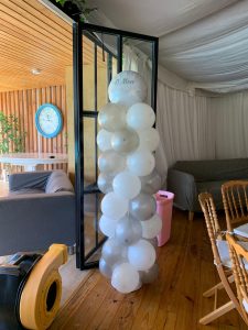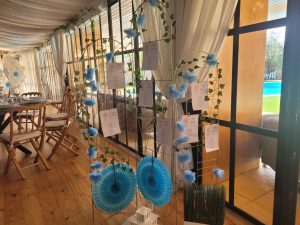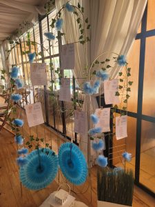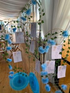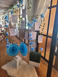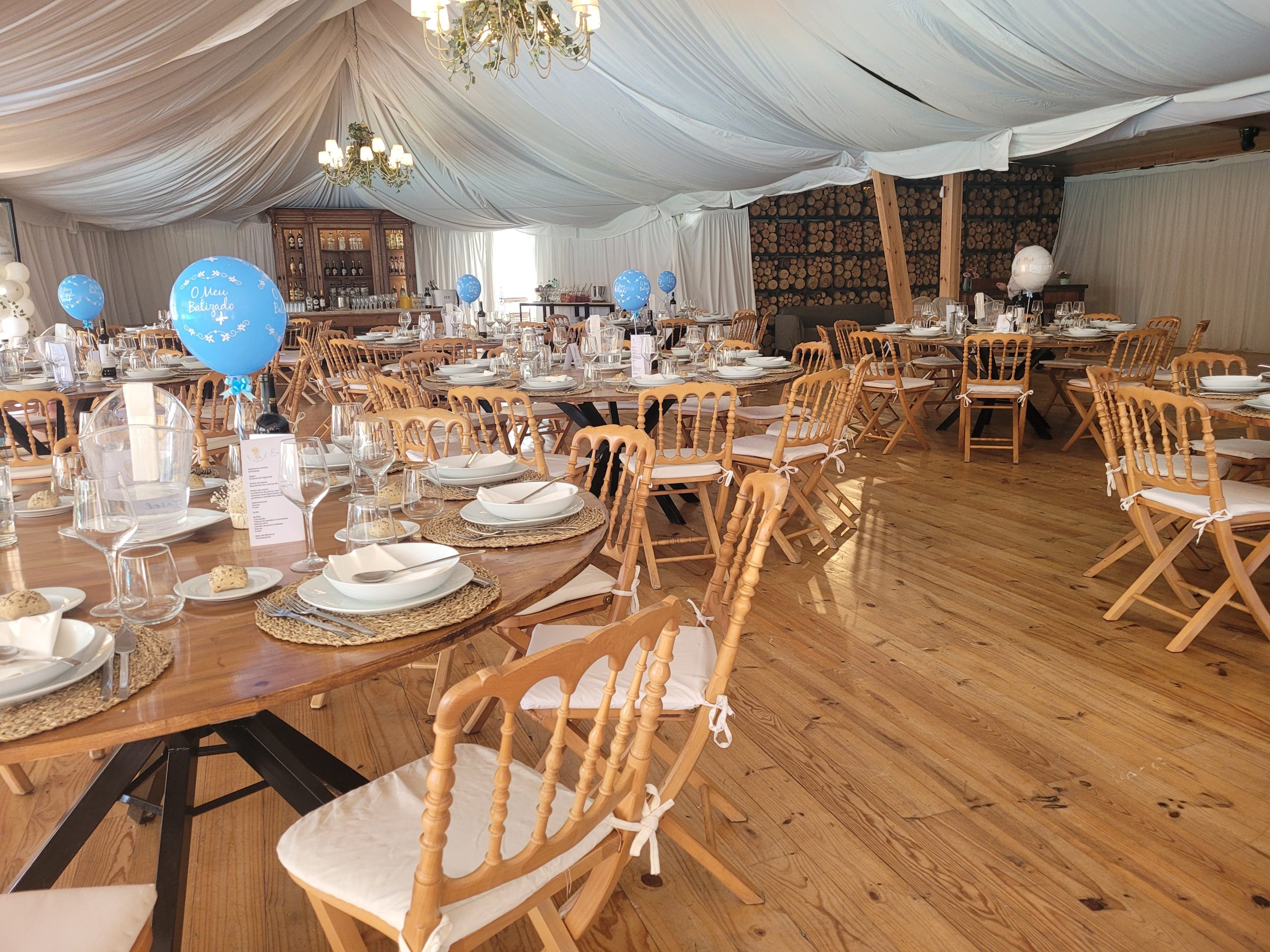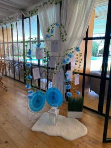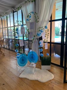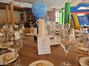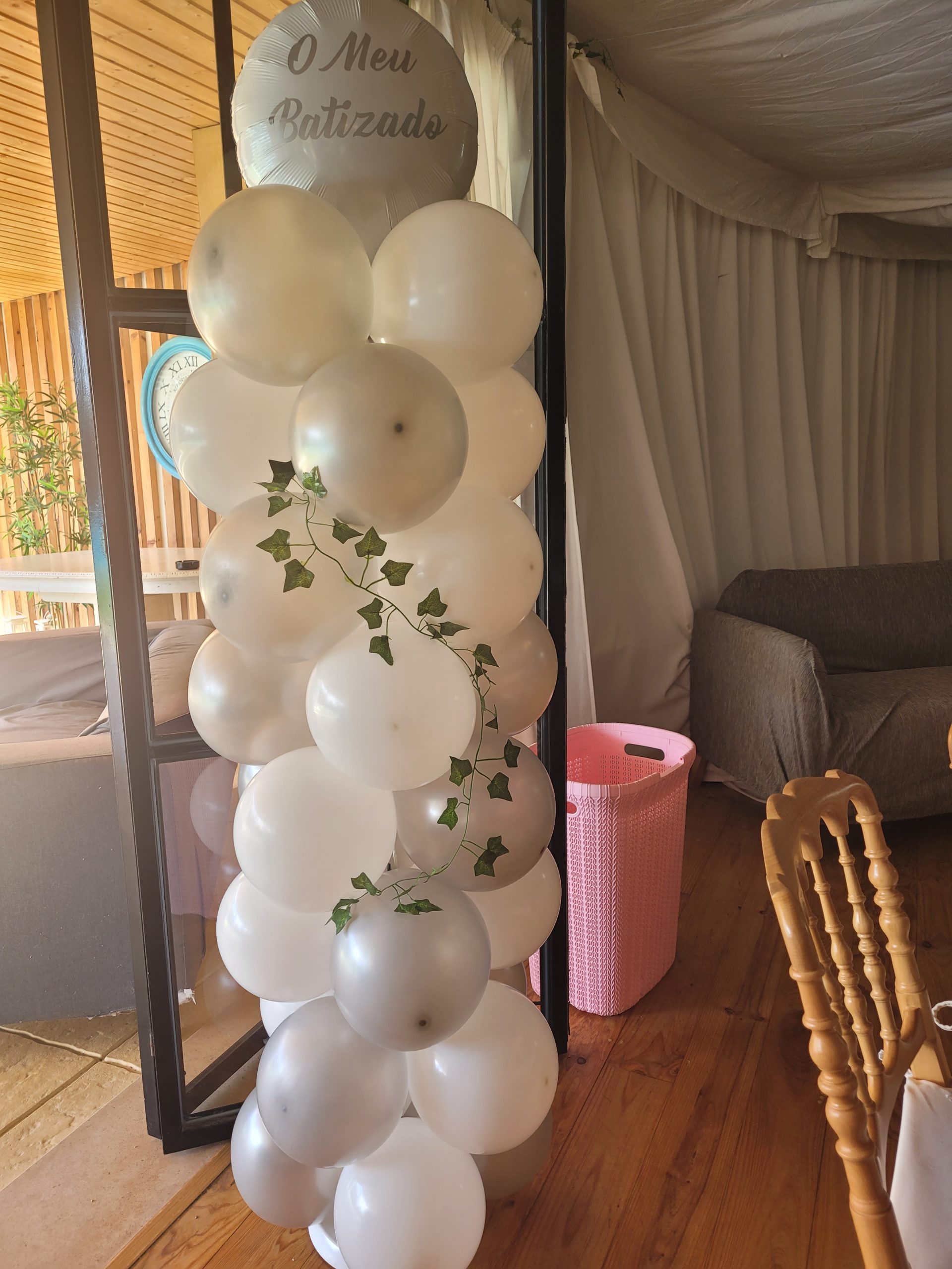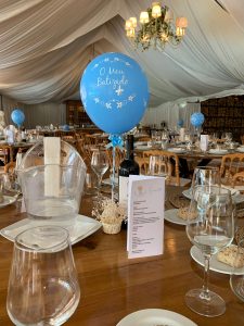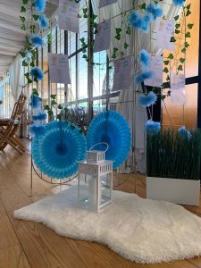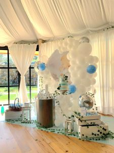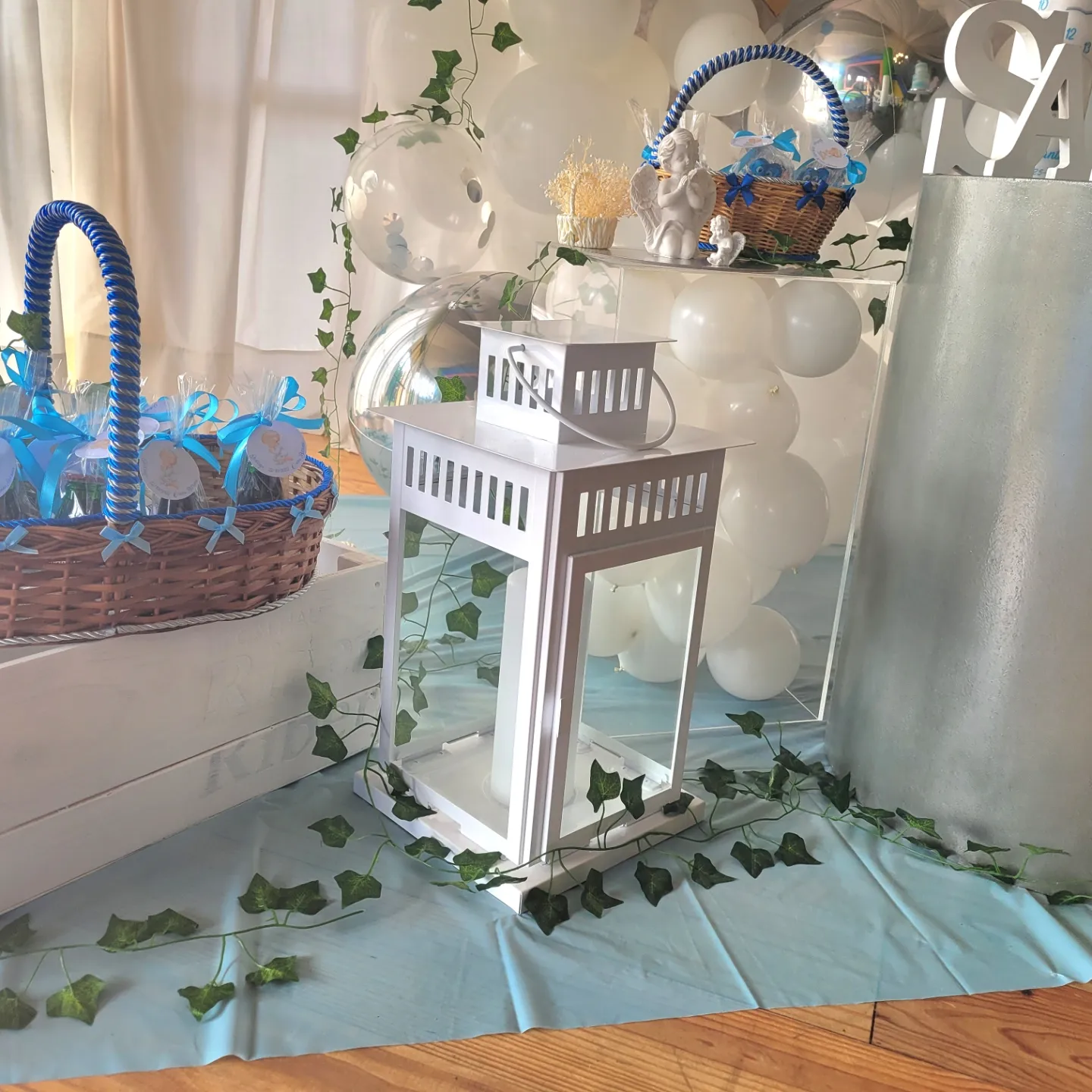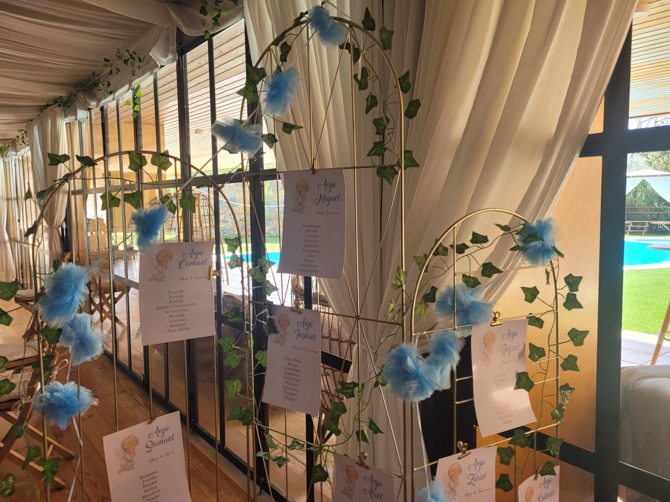 Batismo de menino com diversos elementos decorativos. obrigada papás.