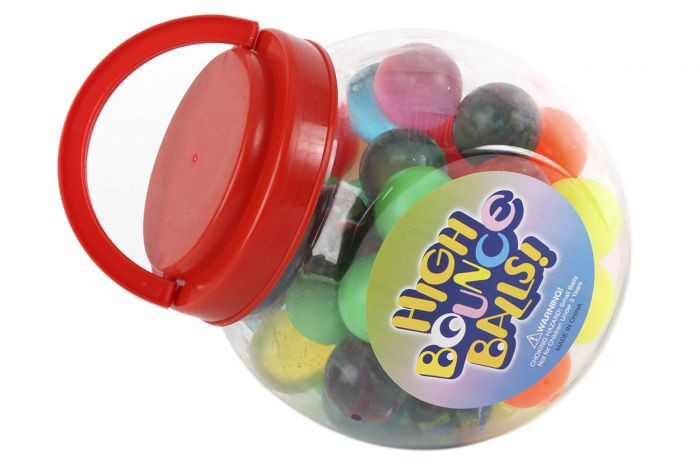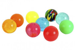 Bolas saltitonas com cerca de 4.5cm de diâmetro em vários modelos disponíveis. Coloridas, cores lisas, transparentes com brilhantes. Ideal para brinde de aniversário.