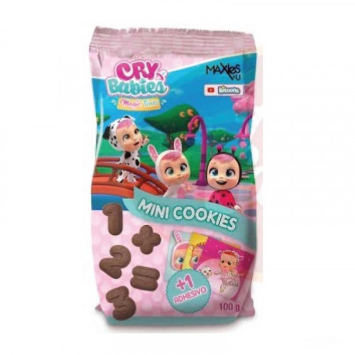 Embalagem com 100 gramas de mini bolachas cookies das personagens dos Cry Babies Magic Tears. Super divertidas para a tua festa de aniversário.