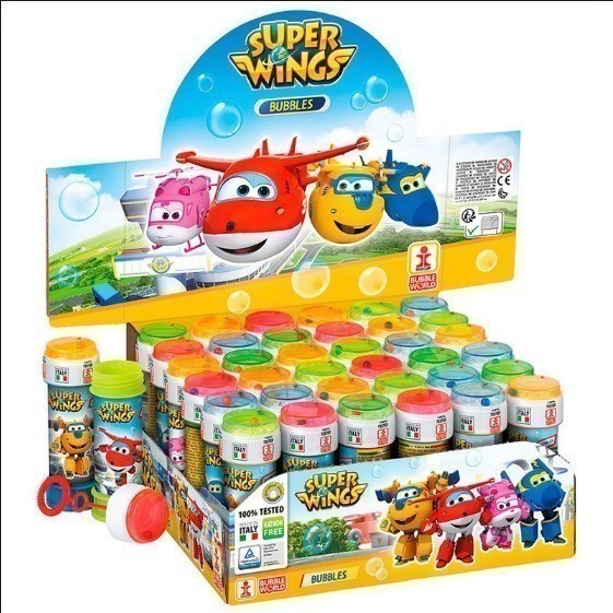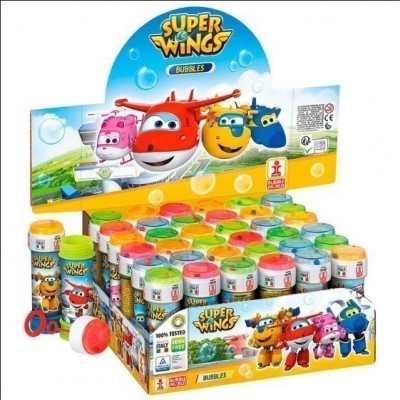 Frasco para fazer bolhas de sabão da nova série animada dos Super Wings, com capacidade de 60ml.
