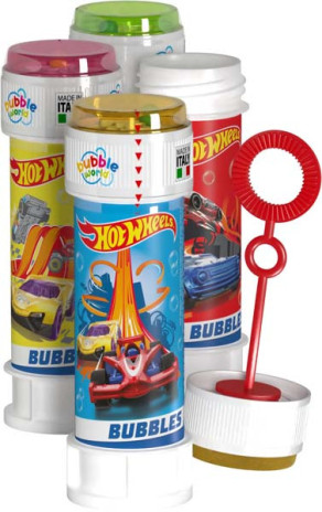 Frasquinho para fazer bolhas de sabão com vários carros da Hot Wheels. Com este frasco podes fazer três tamanhos de bolas de sabão diferentes de uma só vez. Uma ótima e divertida ideia para oferecer como brinde de festa de aniversário.