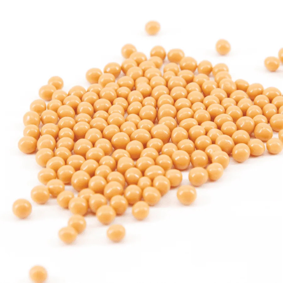 Designação Técnica Bolas crocantes de cor castanho claro, de arroz e cereais, cobertos com chocolate, com sabor doce a caramelo.