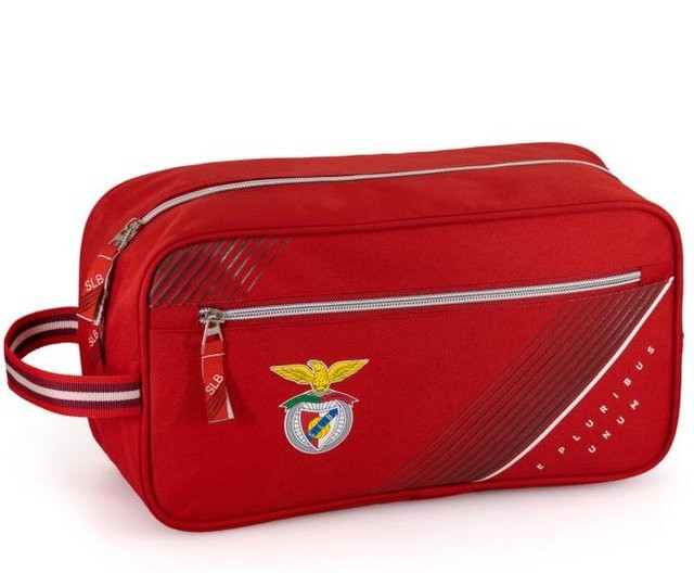 Bolsa para desporto ou porta botas do Sport Lisboa e Benfica com pega lateral, fecho superior e fecho frontal.